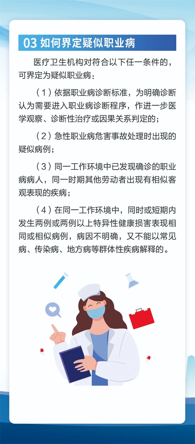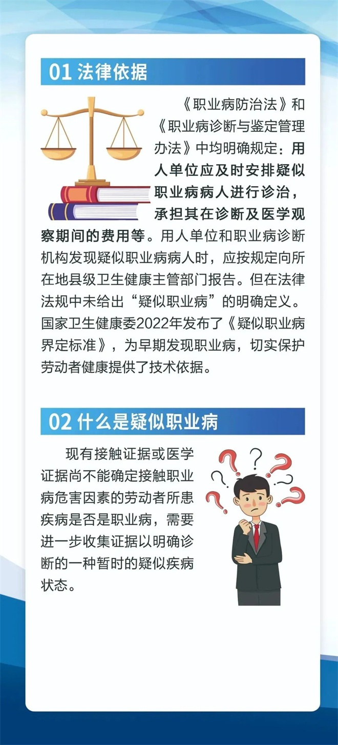 保護(hù)勞動者健康,一起了解疑似職業(yè)病的概念定義、法律依據(jù)、界定標(biāo)準(zhǔn)、處理原則、在界定疑似職業(yè)病過程中的注意事項,以及疑似職業(yè)病病人依法享有的權(quán)益。